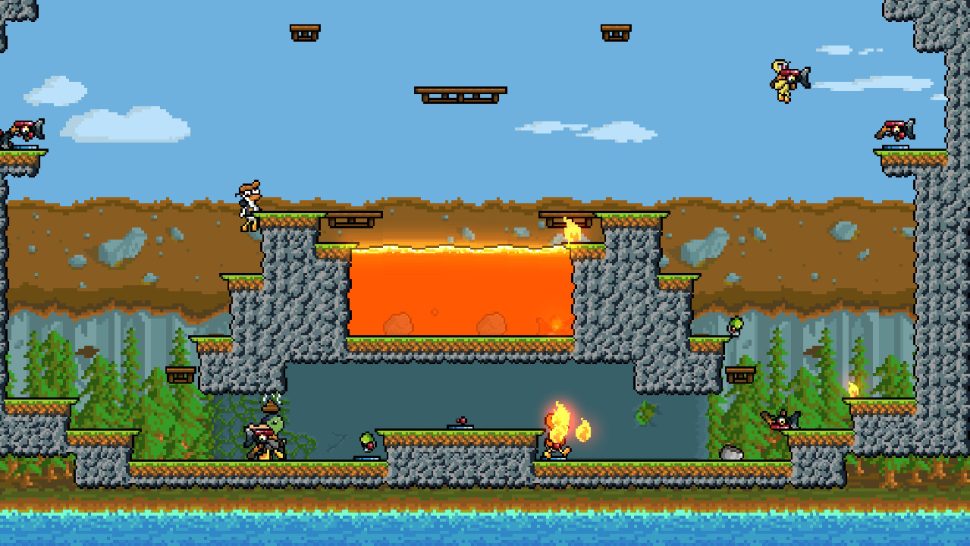 دو نفره روی یک کیبرد هم میتونید بازی کنید. یکی با دکمههای جهت و rCtrl به عنوان پرش و دکمههای ‘ و ; برای شلیک و برداشتن وسایل، بازیکن دوم هم با دکمههای wasd حرکت میکنه، با space میپره و با دکمههای H و G میپره و وسیله برمیداره.